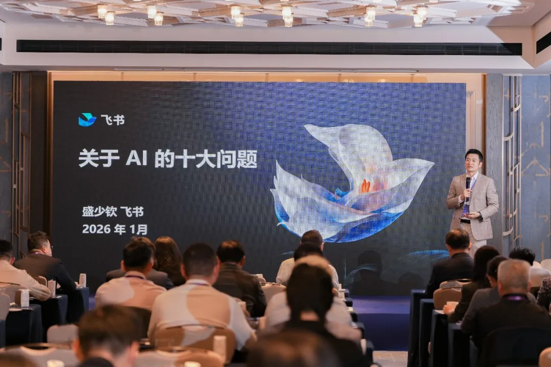 1月12日,中国企业家俱乐部20周年系列庆典活动在深圳举行,飞书盛少钦围绕《关于AI的十个问题》分享了AI组织时代落地实操及案例。