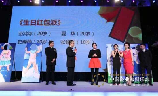 苗鸿冰、夏华、史晓燕、张黎刚,迎来企业20周年和10周年的企业家们吃长寿面,现场派红包